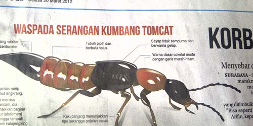 kumbang Paederus ini meresahkan warga masyarakat karena bisa menyebabkan